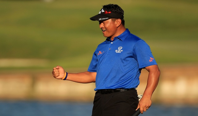 디펜딩 챔피언 함정우(29)는 최경주와 한 조로 경기해 한 홀을 남기고 보기 두 개를 적어내 2오버파로 공동 90위에 그쳤다.